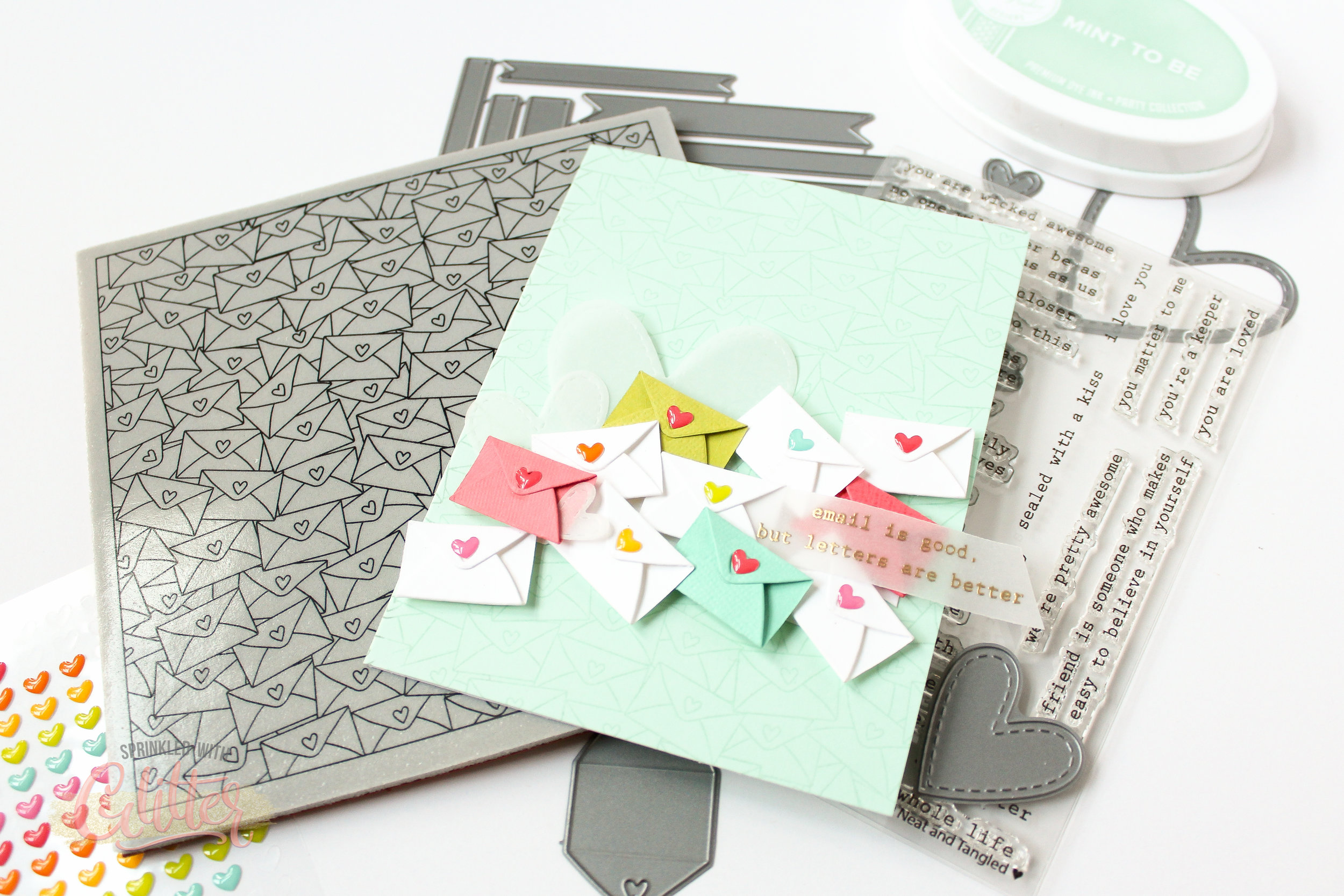 Today I’m featuring a card with lots of layered up mini die cuts. I love the new release from Neat & Tangled. It has some fun new die cuts and stamps that I think you’re going to LOVE.