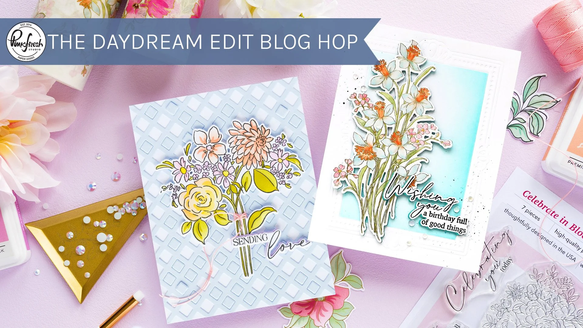 Today I’m sharing a beautiful floral birthday card with a color palette I love for spring! This card features brand new products from the Pinkfresh Studio Daydream Edit release. You’re going to ❤︎ this new release full of gorgeous stamps, dies, stencils and washi tapes!